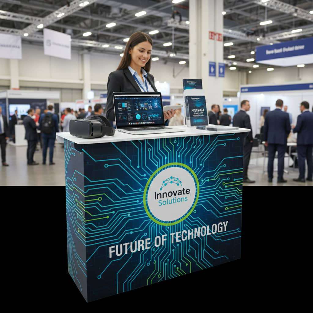 Quando l'allestimento richiede qualcosa di più di un semplice punto appoggio, il nostro Desk Promozionale Rinforzato è la scelta professionale. Progettato specificamente per chi deve lavorare sul banchetto, offre una stabilità strutturale superiore che permette di sostenere monitor, computer all-in-one, pile di cataloghi o campionari pesanti senza flettere. Si raccomanda di distribuire il peso tra i ripiani e la parte superiore del desk.